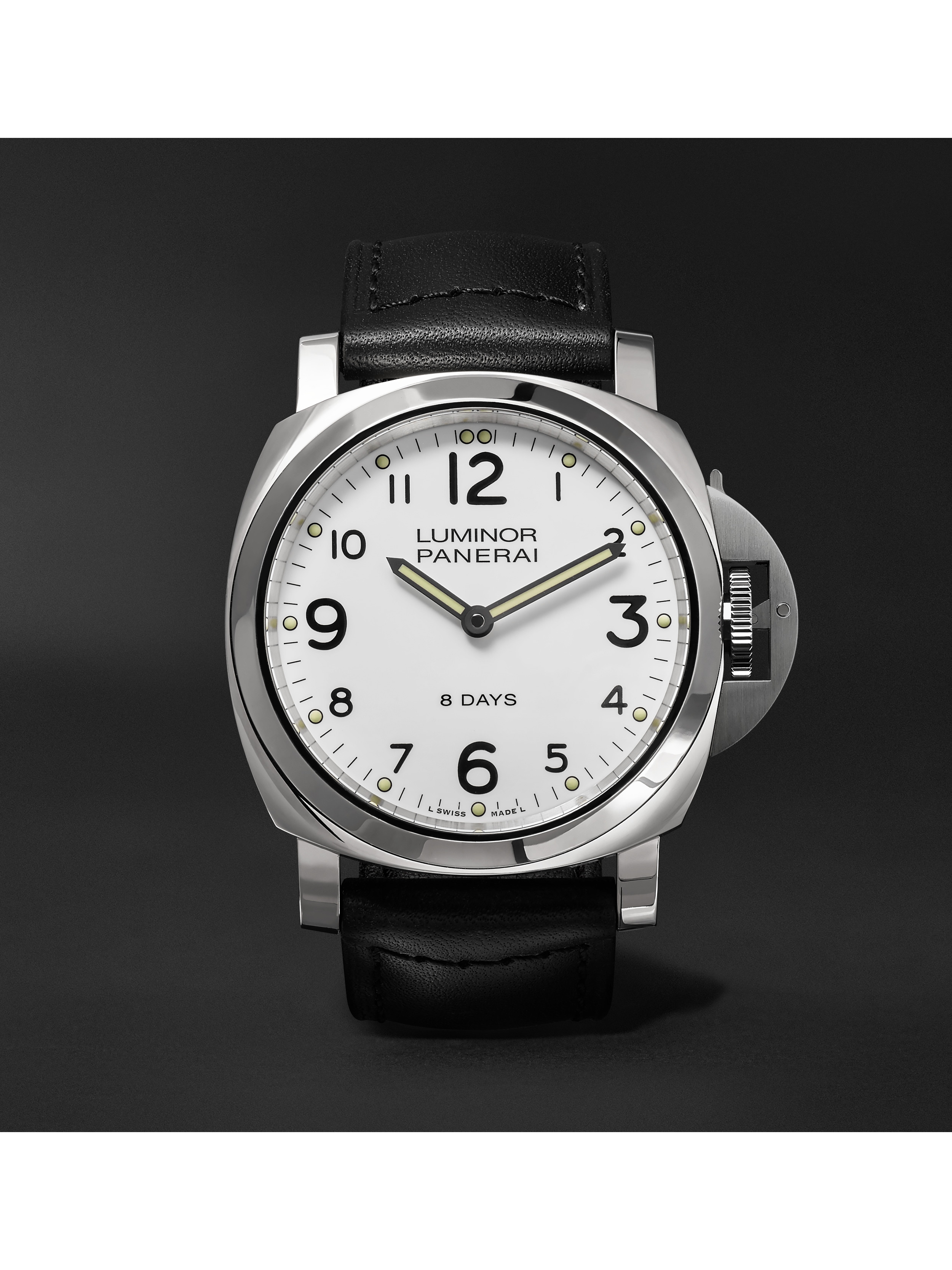 24. October 2017 WATCH OUT MR PORTER! 2500 × 3334 Panerai Luminor Base 8 Days 44mm Stainless Steel and Leather Watch
