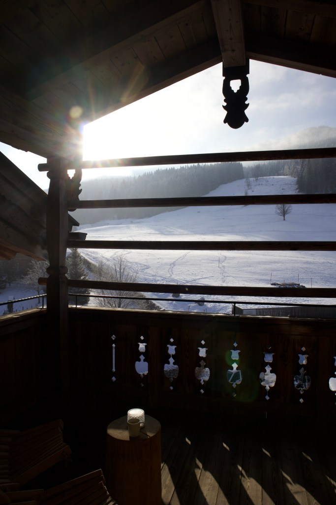 Upon entering the room, a sigh sounded. Rustic, charming, super clean, and with a mountain view, everything I wanted to enjoy a few days in the snow. What’s more, the hotel offers the Leogang Card, which allows you to go up the mountain and see the view – even if you’re not going skiing – and there are bars and restaurants up there! It’s worth a visit…